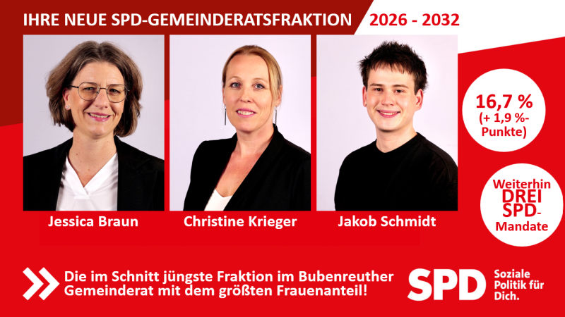Herzlichen Dank für Ihr Vertrauen! Die Bubenreuther SPD kann ihr Ergebnis im Vergleich zur Kommunalwahl 2020 um +1,9 Prozentpunkte auf 16,7 …